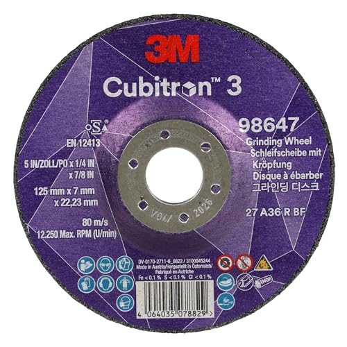 - Es un disco de desbaste industrial de alto rendimiento de la serie 3M™ Cubitron™ 3, diseñado para trabajos de rectificado y desbaste exigentes en aplicaciones metálicas e industriales.
