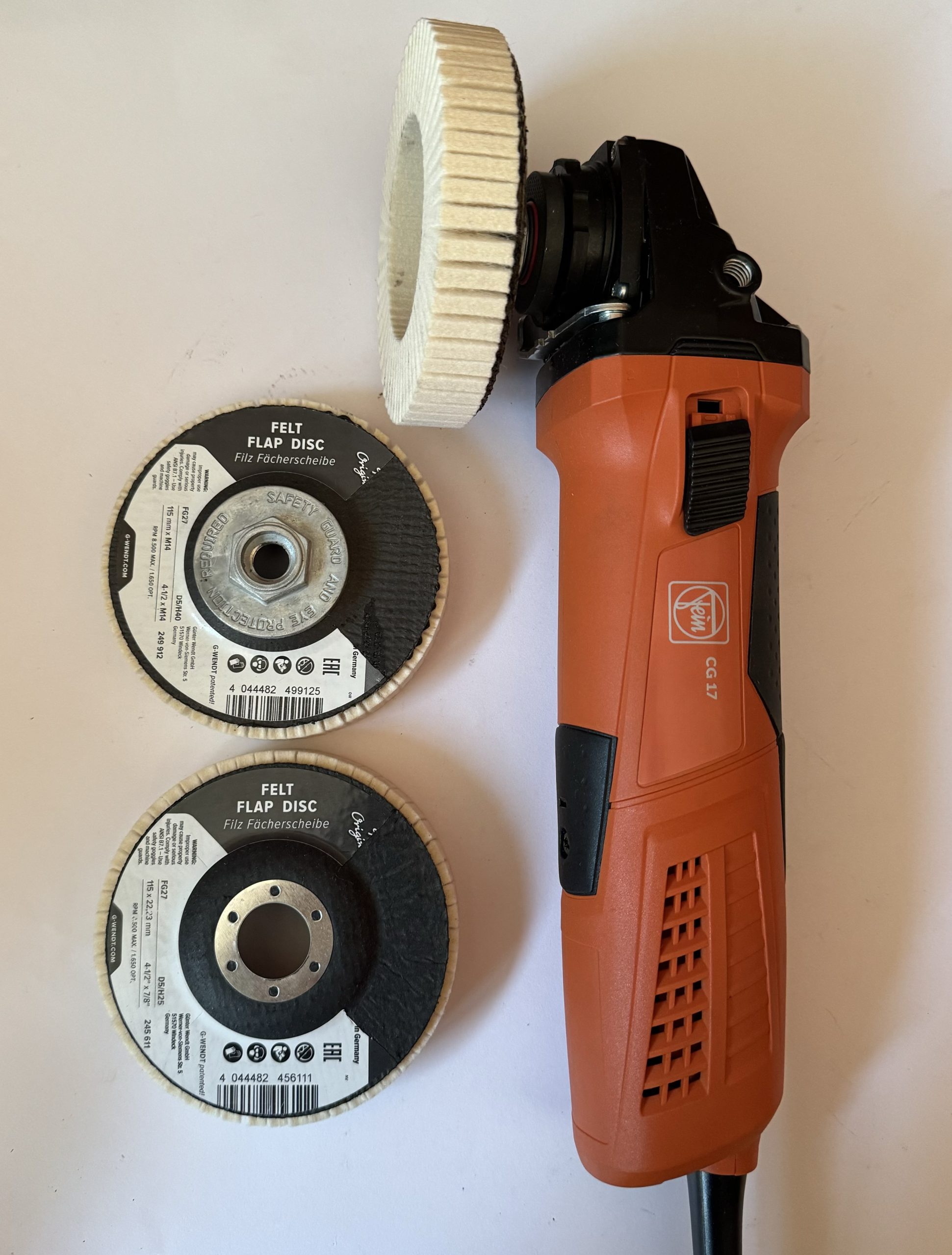 Los discos de laminas de fieltro, se utilizan con pasta de alto brillo para conseguir un pulido espejo en la superficie deseada, aunque, también se puede utilizar en un proceso anterior con una pasta de pulido-brillo, según el estado de la pieza.